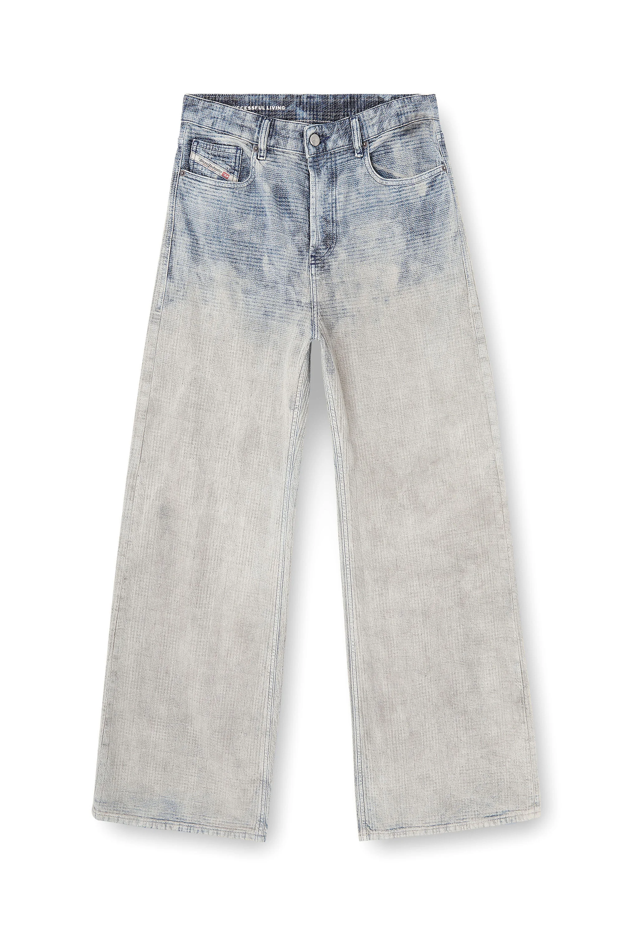 Product Description Relaxed fit with a low waist and low crotch, and extra-long wide leg. The loosest of our denim silhouettes, cut to make a drapey, oversized statement. Button fly. An example of Diesel's experimental vision, this jacquard-weave denim offers a sophisticated take on traditional jeans. Made with organic cotton, it features a traditional Prince of Wales pattern, combined with a dirt-effect wash process for a unique, boldly contrasting look in shades of light and medium blue. The wash is skillfully distressed in Italy. ID: A0692509N93 Size & Fit Model is wearing a size 26 and is 175 cm / 5'7'' Check the size chart to choose the correct size. Materials & Details Composition: 100%Cotton Fit: Relaxed Waist: Low Wash: Treated Fabric: Non-Stretch Closure: Button fly