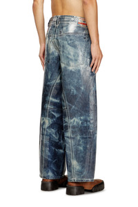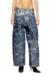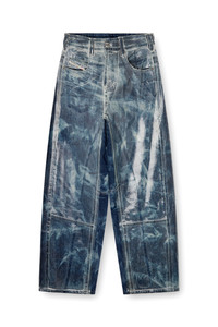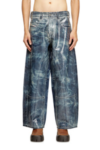Product Description Relaxed fit with a medium waist, low crotch, and long wide leg featuring distinctive cuts on the inseam - a subtle utility-inspired detail. The loose silhouette channels a laid-back vibe. Button fly. Made from a blend of cotton and hemp, this dark blue wash is entirely distressed in Italy for Diesel's Runway Show. A transparent coating creates a vacuum-like effect, while the combination of tie-dye and shaded detailing delivers a bold, heritage-inspired look. ID: A21596007CU Materials & Details Composition: 80%Cotton 20%True Hemp, Application 100%Polyurethane Fit: Relaxed Waist: Mid Wash: Coated Fabric: Non-Stretch Closure: Button fly Crotch: Low