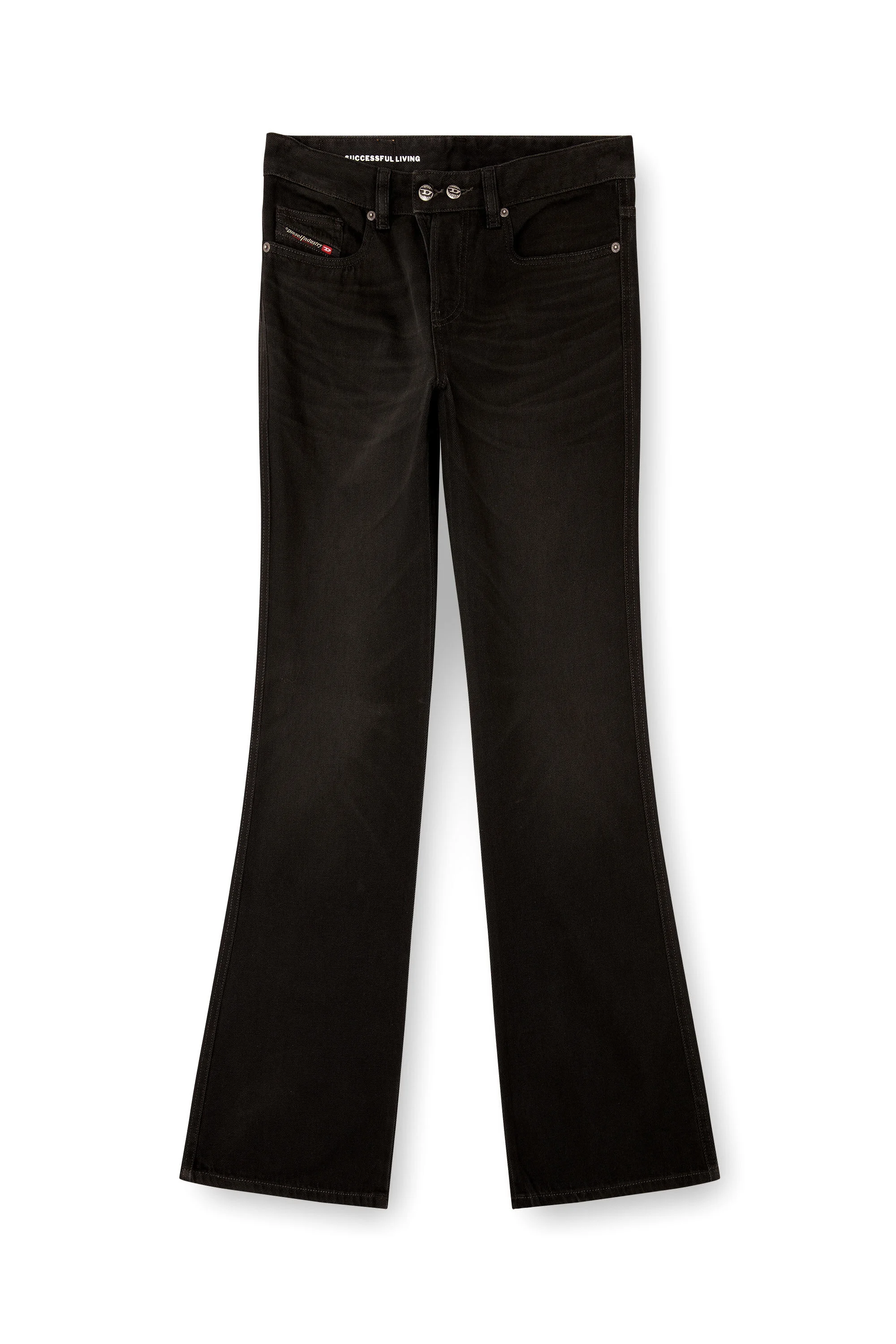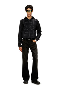 Product Description Bootcut fit with a medium waist, low crotch, and regular leg. The extra-long silhouette has a slightly flared hem and is detailed with an embroidered "D". Button fly. The black wash features a clean, coated finish with tone-on-tone detailing. The fix denim is made using partially recycled cotton. ID: A1221809M20 Size & Fit Model is wearing a size 32 and is 182 cm / 5'10'' Check the size chart to choose the correct size. Materials & Details Composition: 100%Cotton Fit: Bootcut Waist: Mid Wash: Coated Fabric: Non-Stretch Closure: Button fly Crotch: Low