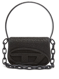 BLACK CALF LEATHER CRACKED EFFECT FOLDOVER TOP WITH MAGNETIC FASTENING SINGLE TOP HANDLE DETACHABLE CHAIN-LINK TOP HANDLE ADJUSTABLE DETACHABLE SHOULDER STRAP OVAL D LOGO PLAQUE PARTITIONED COMPARTMENT FULL LINING INTERNAL LOGO PATCH INTERNAL PATCH POCKET