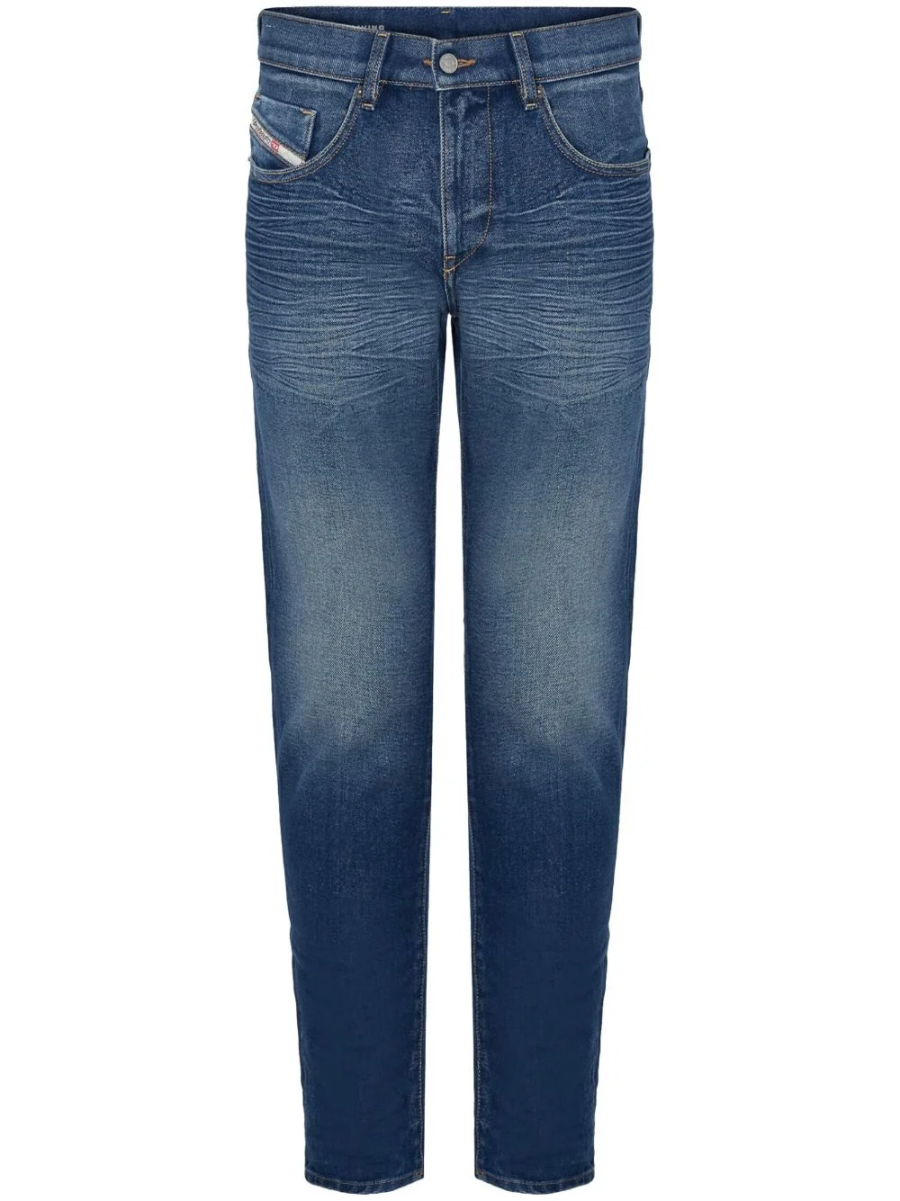 2019 D-Strukt jeans Highlights - Indigo blue - Stretch-cotton - Washed denim - Whiskering effect - Concealed fly and button fastening - Contrast stitching - Belt loops - Applique logo - Classic five pockets - Straight leg - Slim cut Imported Composition Cotton 99%, Spandex/Elastane 1%
