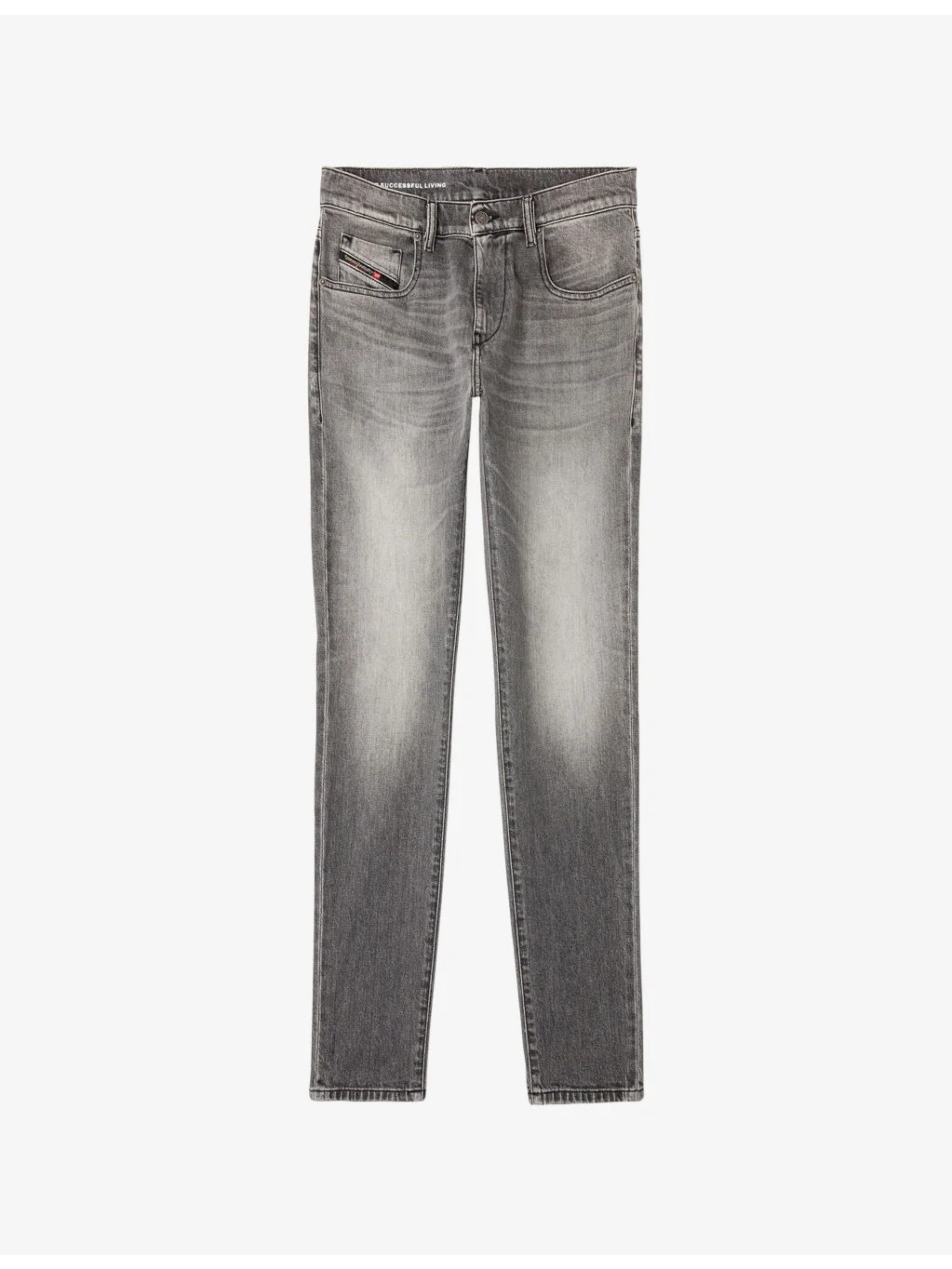 PRODUCT DETAILS - Diesel stretch-denim jeans - 99% cotton, 1% elastane - Exposed button and concealed zip-fly fastening at front - Slim fit, mid rise, belt loops, five pockets, brand patch at coin pocket, slim leg, faded wash, whiskering, brand patch at back, embroidered branding at back pocket - Machine wash at 30°C - Model is 6ft/1.83m and wears a size UK 32 - Midweight, slight stretch Ref: R04479505