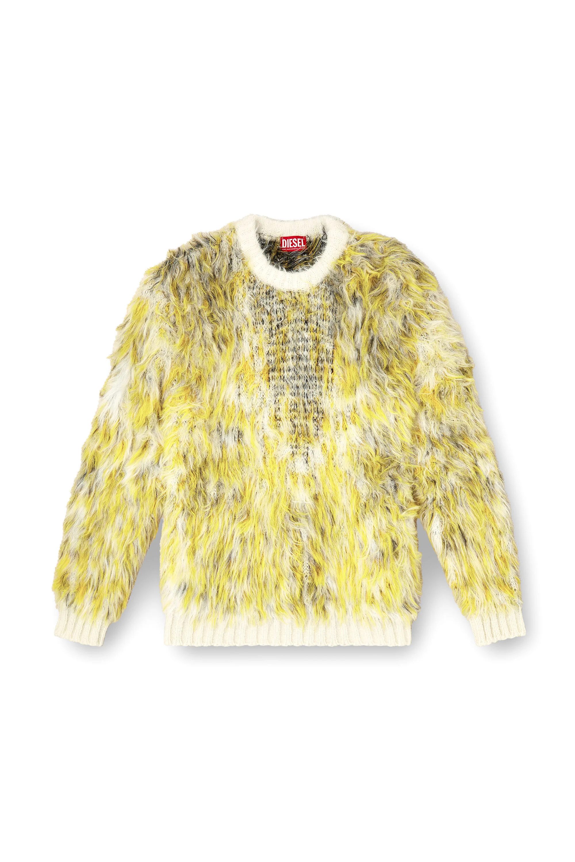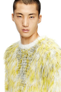 Product Description Part of the Fall Winter 2025 Runway Show collection, this men's sweater is an ultra-fluffy multicolour jacquard knit cut with fearless jolts of acid yellow. Designed for a regular fit. ID: A214380EGCD Size & Fit Model is wearing a size L and is 182 cm / 5'10'' Check the size chart to choose the correct size. Materials & Details Composition: 86%Polyamide-Nylon 8%Acrylic 6%Mohair, Rib 43%Acetate 30%Polyamide-Nylon 27%Mohair Fall Winter 2025 Runway Show Regular fit