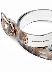 As seen on the FALL WINTER 2024 RUNWAY, this technical fabric belt fastens with an Oval D buckle. The entire accessory is printed with a capture of the show in Milan, which – alongside a real-life audience – hosted 1,000 members of the public via a mass video call projected on giant screens: a proud message of inclusivity, transparency and Diesel’s democratic values.
