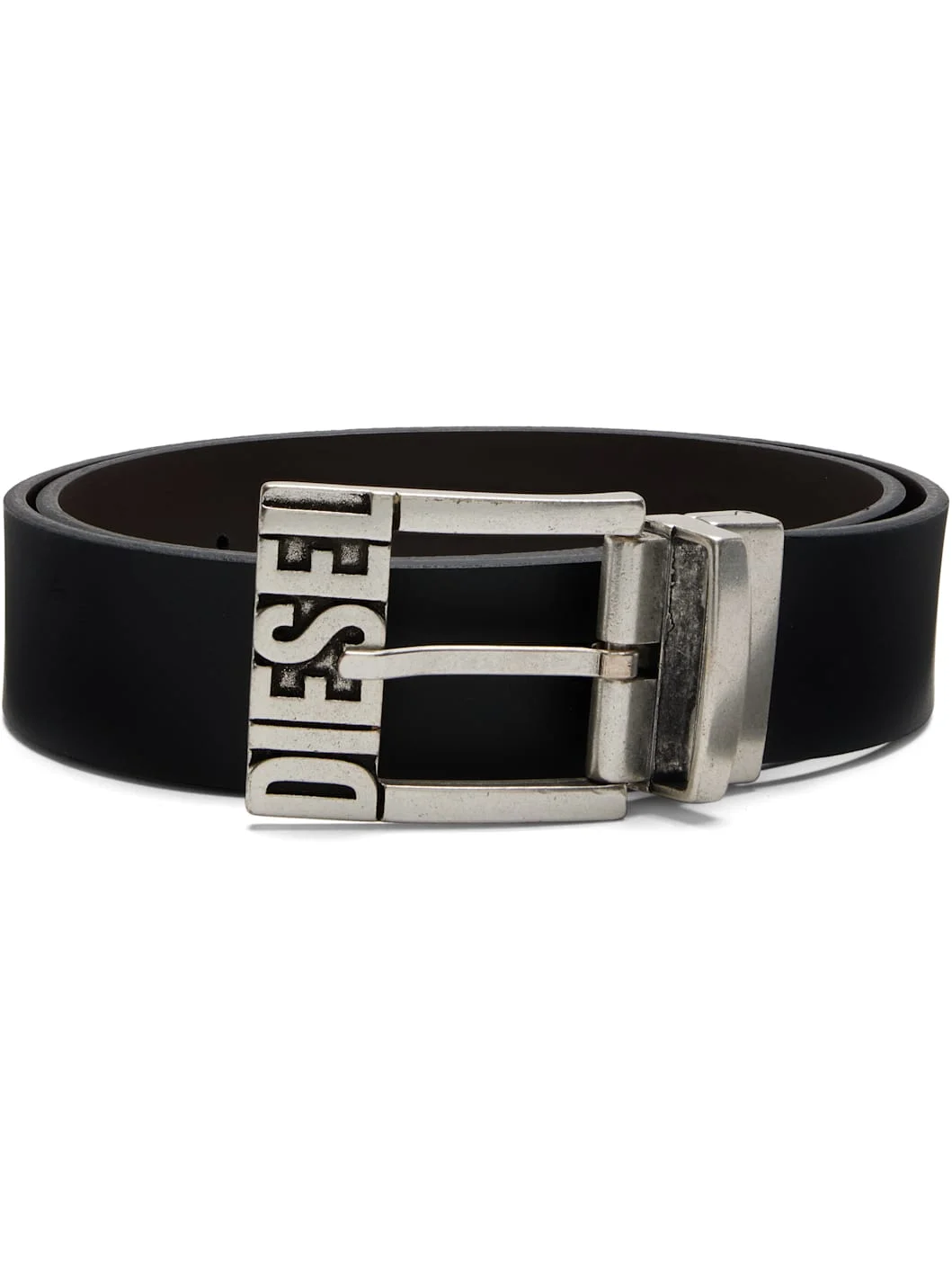 Reversible buffed leather belt. Reverse in brown buffed leather. · Keeper loop at length · Logo at pin-buckle fastening · W1.5" Supplier color: Black/Brown Leather. Made in Romania 252001M131009