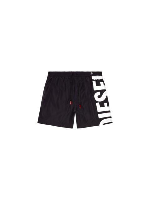 Product Description Men's board shorts cut from quick-dry recycled polyester. Emblazoned with a maxi Diesel For Successful Living print on the left side, cut off at the bottom. ID: A141290NJAS Size & Fit Model is wearing a size L and is 182 cm / 5'10'' Check the size chart to choose the correct size. Materials & Details Composition: 100%Polyester Elasticated drawstring waist Side pockets Back patch pocket