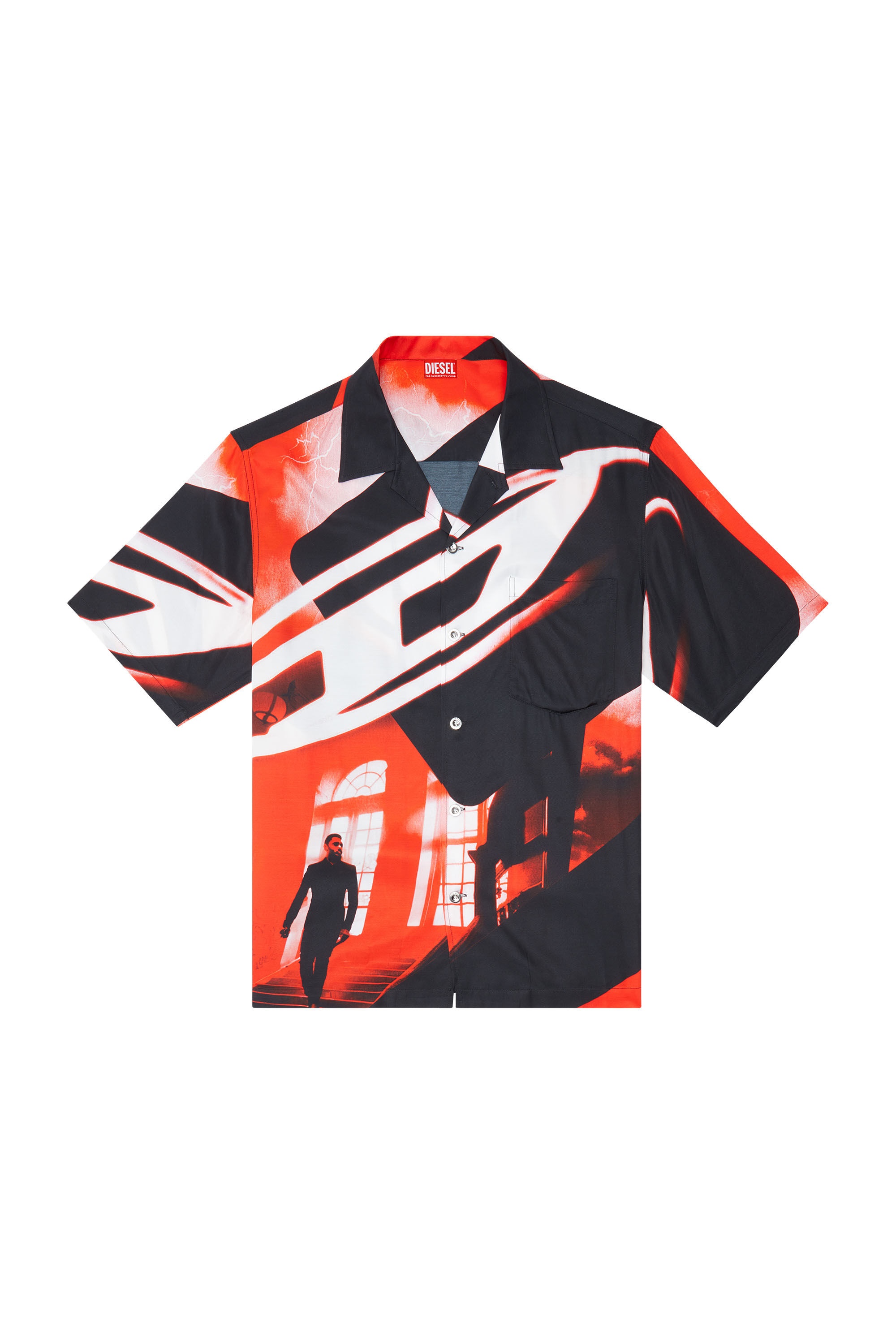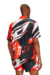 Product Description Men's short-sleeve shirt crafted from light and fluid ECOVERO™ viscose. The whole garment is emblazoned with a red and black graphic print, showcasing Diesel's iconic Oval D logo. ID: A131690DRAB Size & Fit Model is wearing a size L and is 182 cm / 5'10'' Check the size chart to choose the correct size. Materials & Details Composition: 100%Viscose-Rayon Button closure Chest pocket