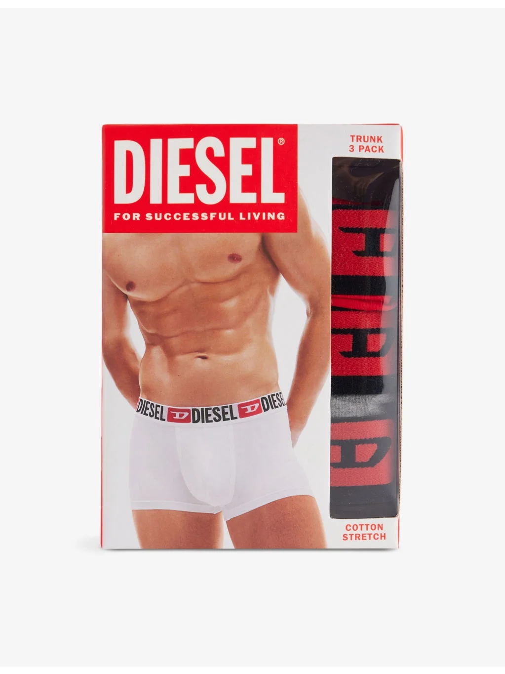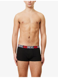 PRODUCT DETAILS - Diesel pack of three stretch-cotton trunks - 95% cotton, 5% elastane - Pulls on - Mid-rise, branded elasticated waistband, supportive panel at front - Machine wash at 30°C - Model is 6ft 2in/1.88m and wears a size medium - Lightweight, slight stretch - For hygiene reasons, we are unable to exchange or refund this product, unless faulty. Ref: R04421748