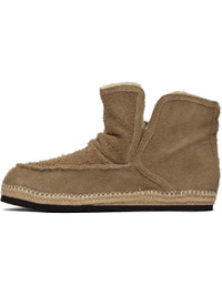Ankle-high brushed suede Chelsea boots. · Moc toe · Elasticized gusset and notch at sides · Blanket stitching at welt · Braided jute midsole · Fleece lining · Rubber sole Supplier color: Light brown Upper: leather. Sole: textile, rubber. Made in Viet Nam 252001M223007