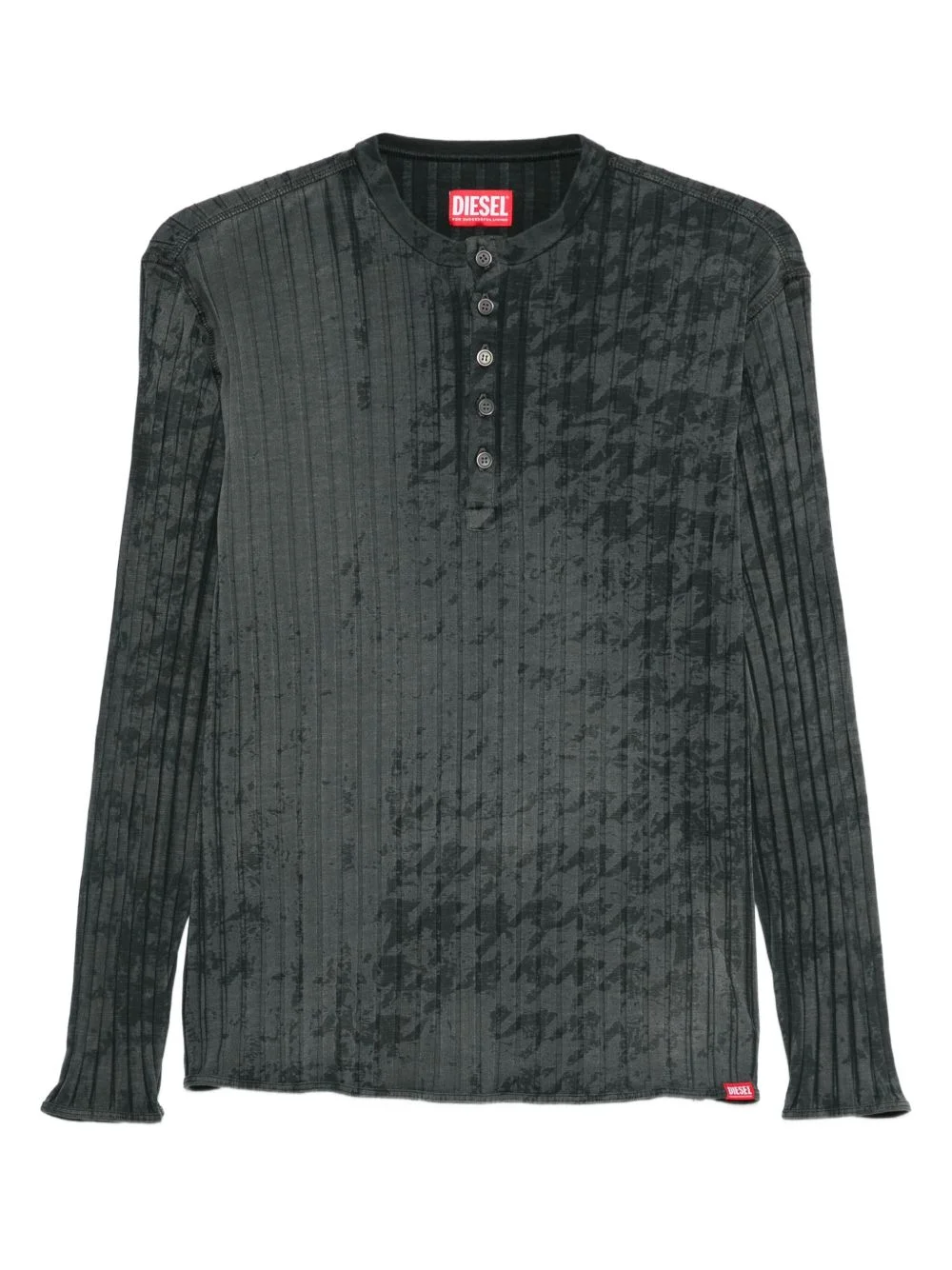 buttoned ribbed t-shirt Highlights - Grey - Ribbed knit - Button fastening - Round neck - Long sleeves Imported Composition Cotton 100% SIZE & FIT Model measurements Height 6 ft 2 in(1.88 m) Bust/Chest 36.61 in(93 cm) Hips 35.82 in(91 cm) Waist 27.95 in(71 cm) Washing instructions Read Manufacturer Guidelines