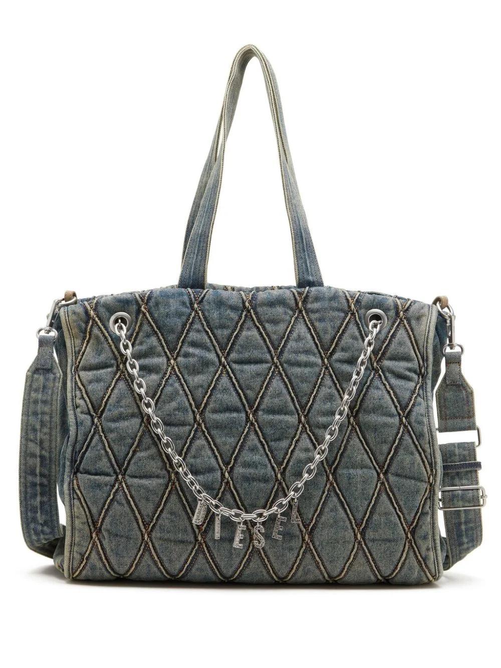 Charm-D tote bag Highlights - Blue - Cotton - Denim - Quilted - Charm detail - Chain-link detailing - Applique logo - Silver-tone hardware - Two flat top handles - Internal logo patch - Internal zip-fastening pocket - Adjustable detachable shoulder strap - Main compartment - Top zip fastening Imported Composition Outer: Cotton 100%