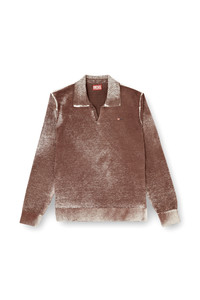 Product Description This men’s cotton polo sweater sports a unique fade – the colour, patchy and rogue, bleeds from a print applied on the inside of the knit. The impact of this technique is strongest on the ribbed trims, where the tone drops lighter. It’s cut to a regular fit with an easy, open neckline. A micro-embroidered logo subtly hallmarks the chest. ID: A217500BKCB Size & Fit Model is wearing a size L and is 182 cm / 5'10'' Check the size chart to choose the correct size. Materials & Details Composition: 100%Cotton Regular fit Open polo neckline Ribbed trims