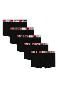 Product Description Multipack of men's trunks crafted from soft stretch cotton. This set features five pairs in five different colours—blue, grey melange, red, white, black—and an all-over logo waistband. ID: 00SUAG0DDAI Size & Fit Model is wearing a size L and is 182 cm / 5'10'' Check the size chart to choose the correct size. Materials & Details Composition: 95%Cotton 5%Elastane-Spandex, Elastic 65%Polyamide-Nylon 23%Polyester 12%Elastane-Spandex By buying cotton products from Diesel, you’re supporting responsible cotton production through "Better Cotton”. Set of 5 items Elasticated logo waistband