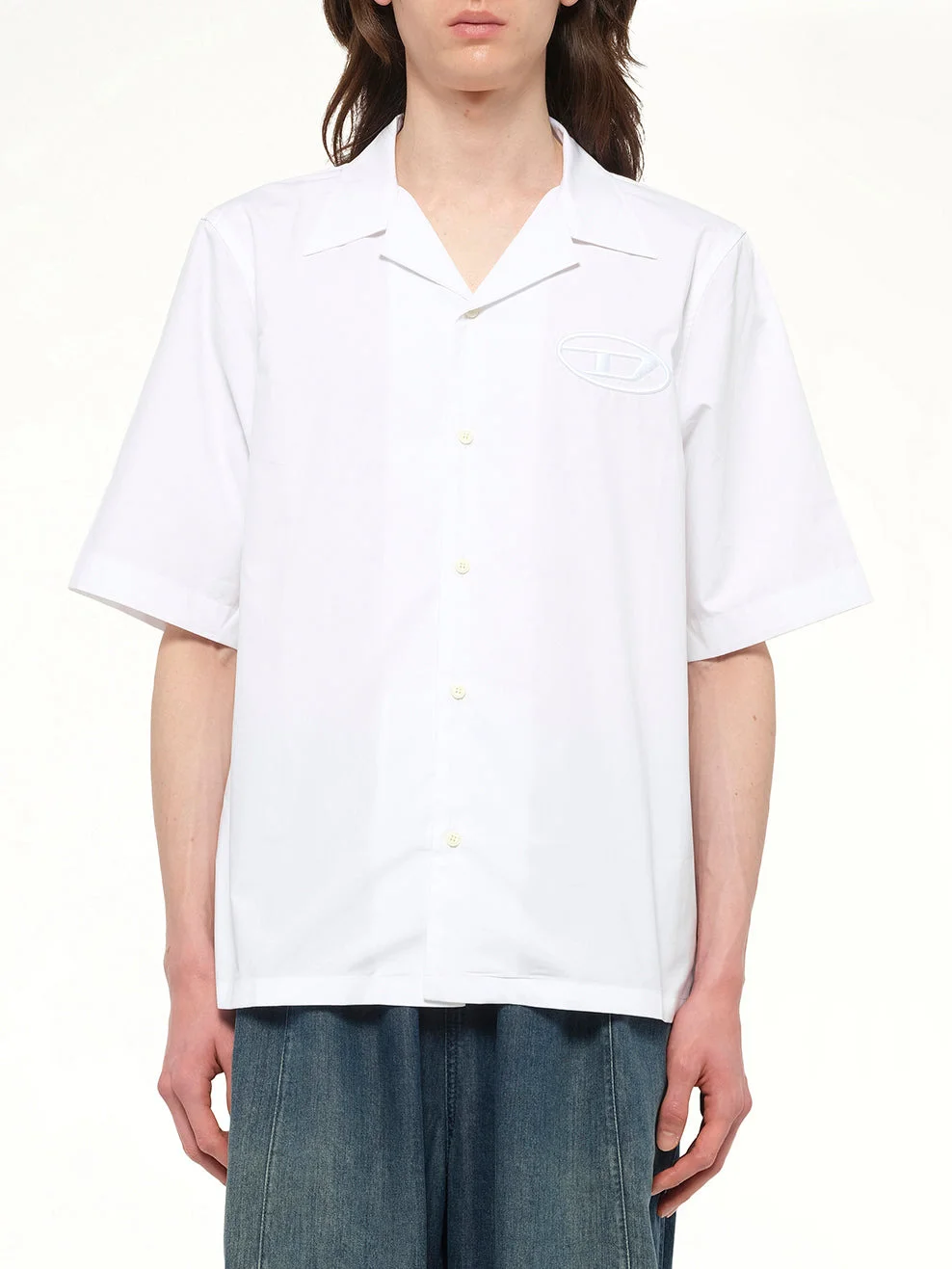 Diesel's S-MAC-PCAL Short Sleeve Shirt in White is a stylish and versatile addition to any wardrobe. Perfect for both casual and semi-formal occasions, this shirt offers a modern fit and timeless appeal. - Composition: 100%Cotton - Short sleeve design for a relaxed look - Crisp white color for a clean and fresh appearance - Button-down front for easy wear - Classic collar for a polished finish - Subtle branding for a touch of Diesel's signature style - Made in N/A Model is 187 cm and wears size 48 SKU: A196790PCAL 100