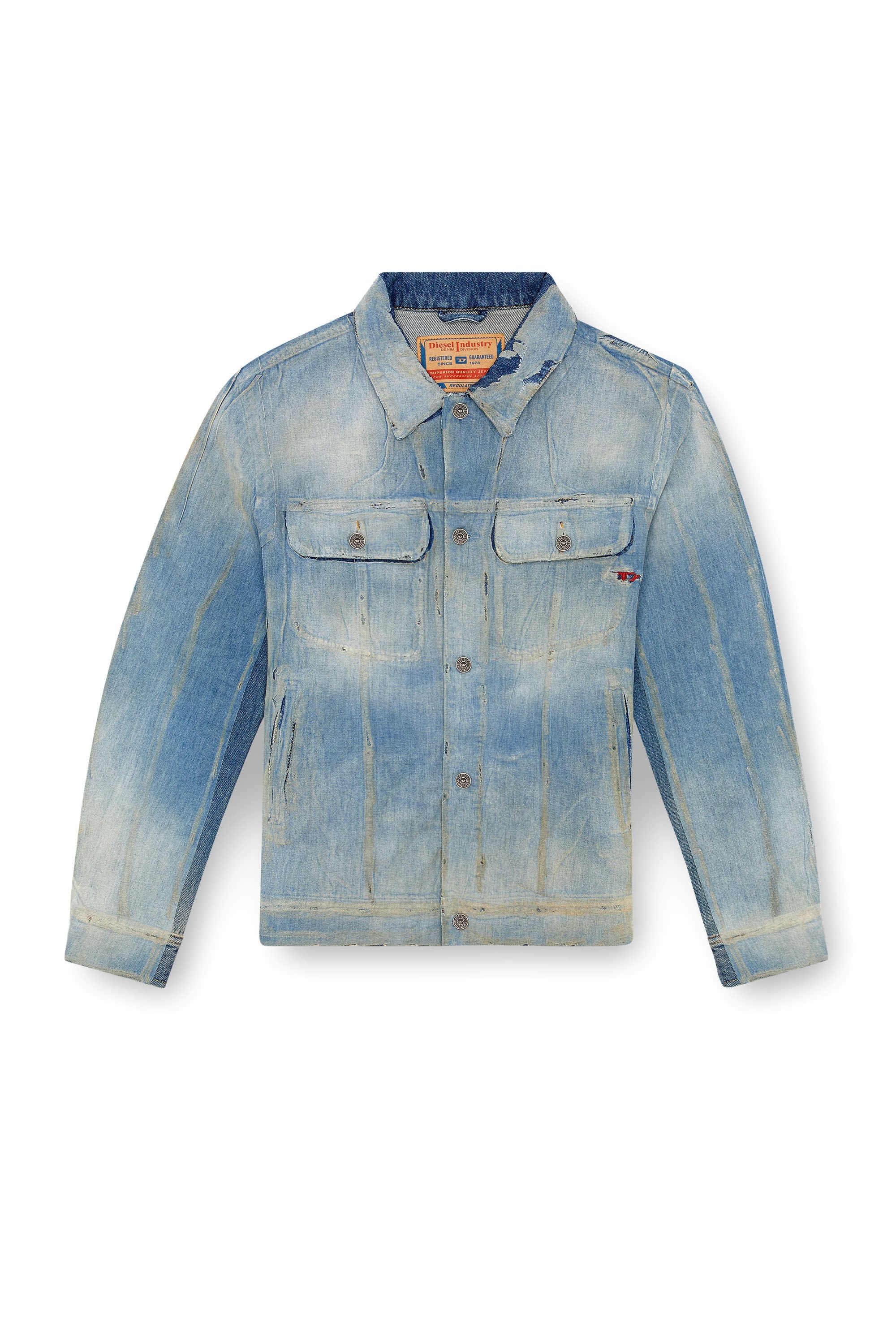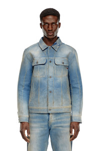 Product Description Men's trucker jacket with chest pockets, yoke detailing, and branded metal buttons. This fix denim is a perfect example of Diesel's unique know-how and pure rawness. The medium blue wash is bonded with a lighter blue denim on the front of the garment, pressed and worn to create iconic peel-off details. Washed-out and bleach effects enhance the colour contrast between the layers. ID: A1473009K22 Size & Fit Model is wearing a size L and is 182 cm / 5'10'' Check the size chart to choose the correct size. Materials & Details Composition: 100%Cotton, Application 100%Cotton Regular fit 4 pockets Button cuffs and waist adjusters Shank button closure
