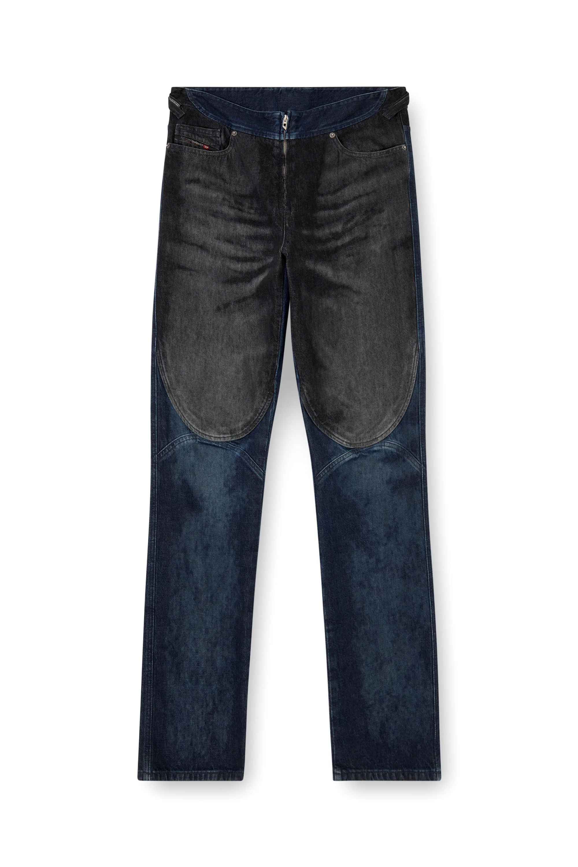 Product Description Regular fit with a medium waist and slim leg, detailed with biker-inspired cuts below the knee. A bold zip closure and unconventional waist construction complete the style. Inspired by Diesel’s heritage and continuous innovation, this bicolour wash channels a bold biker aesthetic. Crafted from fix denim in cotton and hemp, it combines two contrasting washes – dark blue and black – that enhance the construction of the garment. Lasered whiskers with a striking negative effect, and a total fade black treatment achieve an authentic worn-in effect. ID: A18433007BX Size & Fit Model is wearing a size 32 and is 182 cm / 5'10'' Check the size chart to choose the correct size. Materials & Details Composition: 80%Cotton 20%True Hemp Fit: Regular Waist: Mid Wash: Medium treated Fabric: Non-Stretch Closure: Zip fly