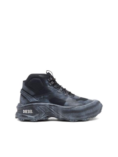 d-cage panelled logo boots Highlights - Gree - Panelled design - Logo lettering - Round toe - Lace-up fastening Imported Composition Outer: Polyester 100% Lining: Fabric 100% Sole: Rubber 100%