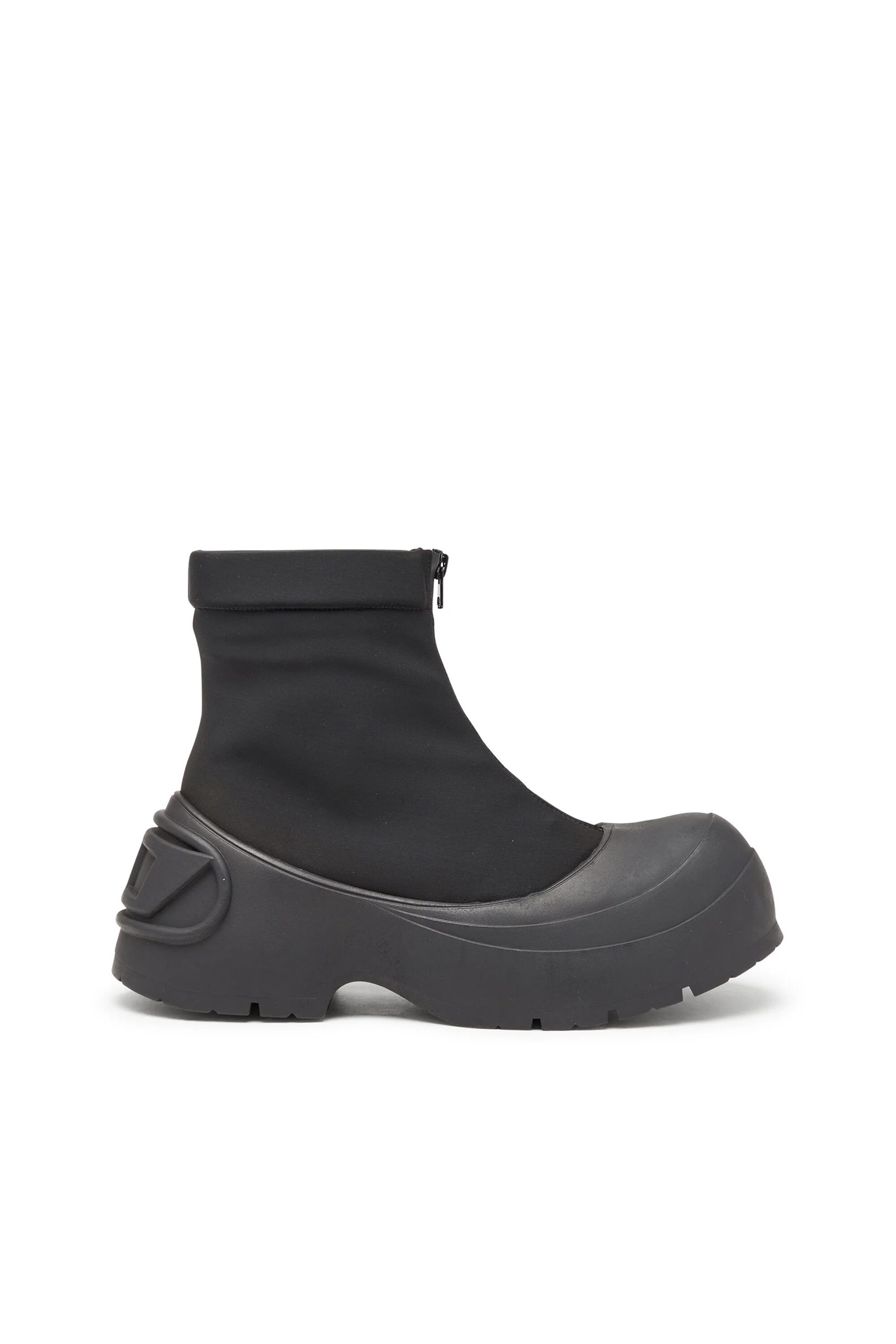 Product Description Ultra-chunky and functional, these men’s black boots are designed with a flexible, ankle-height upper featuring a waterproof zip fastening with laces beneath – the dual system allows for versatile styling. The exaggerated rubber sole climbs over the toes for added protection and features a large Oval D logo moulded into the heel. ID: Y03457P6951 Materials & Details Composition: 82%Polyamide-Nylon 18%Elastane-Spandex Dual closure: Drip-proof zip and hidden laces Lug sole
