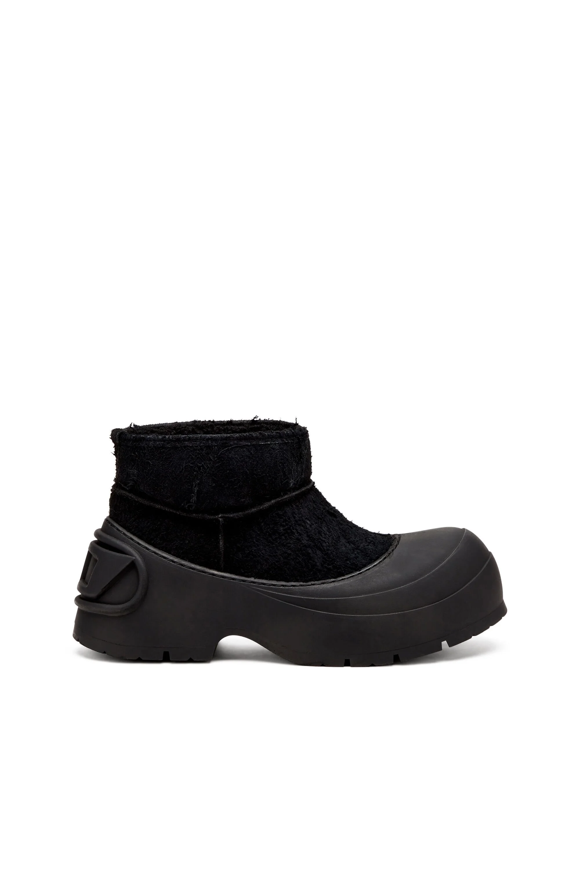 Product Description This men's ankle boot is made from soft calfskin suede. The pull on construction is set on a chunky rubber sole which has a custom tread, and rises up to wrap the upper in a juxtaposition of textures that confirms an urban edge. A large molded Oval D wraps the back of the heel, and is printed on the insole. ID: Y03586P6898 Materials & Details Composition: 100%Cow Leather