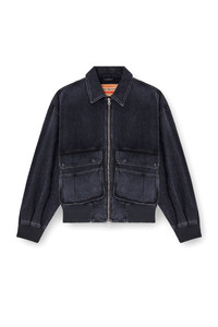 Product Description Defined by oversized pockets, this bomber jacket has a genderless silhouette with a relaxed fit and tonal ribbed trims. It's detailed with a metal D on the back of the neck. Channelling a utilitarian attitude that's integral to Diesel's DNA, this black wash is crafted from premium batavia-weave denim with a particularly smooth, compact feel. The fabric is stonewashed and delicately hand-sanded for a clean yet authentic look. ID: A15780007Z9 Size & Fit Model is wearing a size L and is 188 cm / 6'2". Model is wearing a size S and is 177 cm / 5'9". Materials & Details Composition: 59%Cotton 41%Modal, Rib 97%Cotton 3%Elastane-Spandex Ribbed trims Maxi pockets with snap-button flaps Zip closure