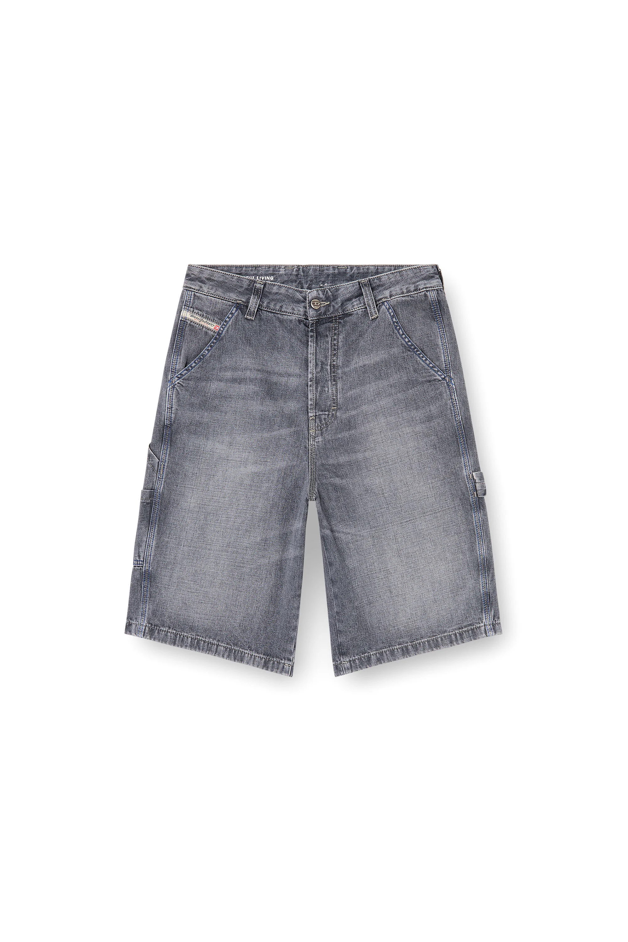 Product Description Men's knee-lenght shorts cut to a relaxed fit, characterised by large patch pockets at the back and workwear-inspired details. Crafted from fix denim in 100% regenerative cotton, this grey wash has a clean finish that lets the construction of the garment really shine through. ID: A1927009N83 Size & Fit Model is wearing a size 32 and is 182 cm / 5'10'' Check the size chart to choose the correct size. Materials & Details Composition: 100%Cotton Relaxed fit Five pocket style Utility pockets and hammer loop Knee-length design