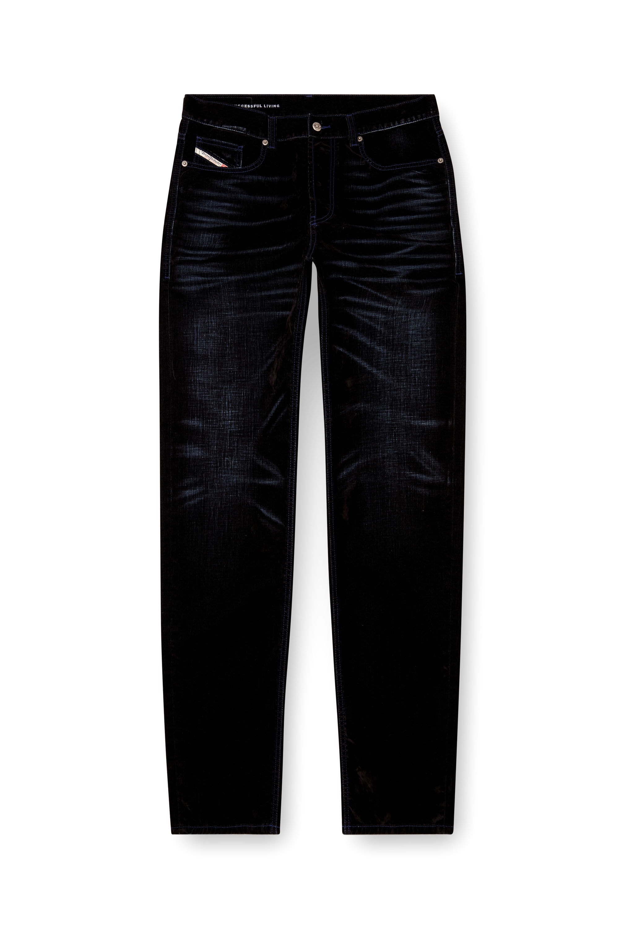 Product Description Regular fit with a medium waist, low crotch, and a lightly tapered leg. Button fly. Featuring a velvety flocked texture, this dark blue wash is crafted from fix denim. The garment is hand-sanded to enhance the whiskers, lending the garment a heritage look. ID: A03564068QY Size & Fit Model is wearing a size 32 and is 182 cm / 5'10'' Check the size chart to choose the correct size. Materials & Details Composition: 100%Cotton, Application 100%Viscose-Rayon Fit: Regular Waist: Mid Wash: Treated Fabric: Non-Stretch Closure: Button fly