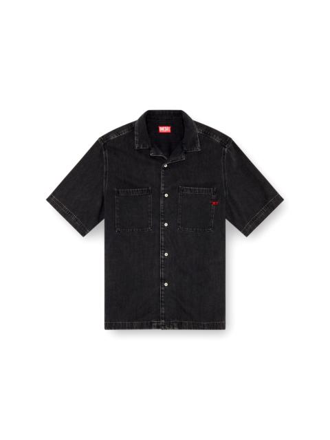 Product Description Men's bowling shirt in black TENCEL™ Lyocell denim with subtle treatments, featuring a camp collar and short sleeves. Detailed with a red D logo embroidery on the left chest pocket. ID: A03533068KE Size & Fit Model is wearing a size L and is 182 cm / 5'10'' Check the size chart to choose the correct size. Materials & Details Composition: 50%Cotton 50%Lyocell Chest patch pockets Button closure