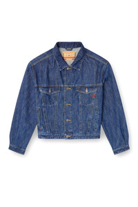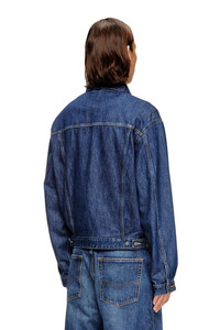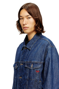 Product Description This men's trucker jacket is inspired by an archive silhouette, reworked with contemporary sensibility while staying true to its original 80s jeans aesthetic. The jacket is slightly cropped and close-fitting at the waist, with boxy oversized shoulders and sleeves. Embroidered with a red D logo.It's crafted from fix denim made with 50% organic cotton, and treated for an authentic, medium blue finish. Part of Diesel's DNA selection of wardrobe must-haves. ID: A216800IRAA Size & Fit Model is wearing a size L and is 188 cm / 6'2". Model is wearing a size S and is 177 cm / 5'9". Materials & Details Composition: 100%Cotton 4 pockets Button cuffs and waist adjusters Shank button closure