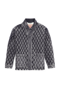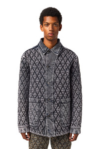 PRODUCT ID: A056480ELAR - 98%Cotton 2%Elastane-Spandex - SS22 Fashion Show Collection - Front and back patch pockets - Shank button closure Model is wearing a size L and is 182 cm / 5'10'' Fits true to size, take your normal size. This boxy-fit jacket with a workwear silhouette is part of the SS22 Fashion Show Collection. It features patch pockets on the front and back. Masterfully crafted, this stretch-denim wash features a strong marble treatment in light and dark shades, overdyed for a coloured finish. The traditional Argyle motif is stitched on the lightly padded fabric to create a tactile finish.