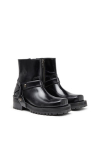 These men’s ankle boots are an excellent mix of rugged and sleek. Designed in a square-toe shape, they're made from shiny black leather with side zip fastenings and chunky rubber lug soles. The Western-inspired harness features a bold cut-out Oval D logo at the heel and can be removed.