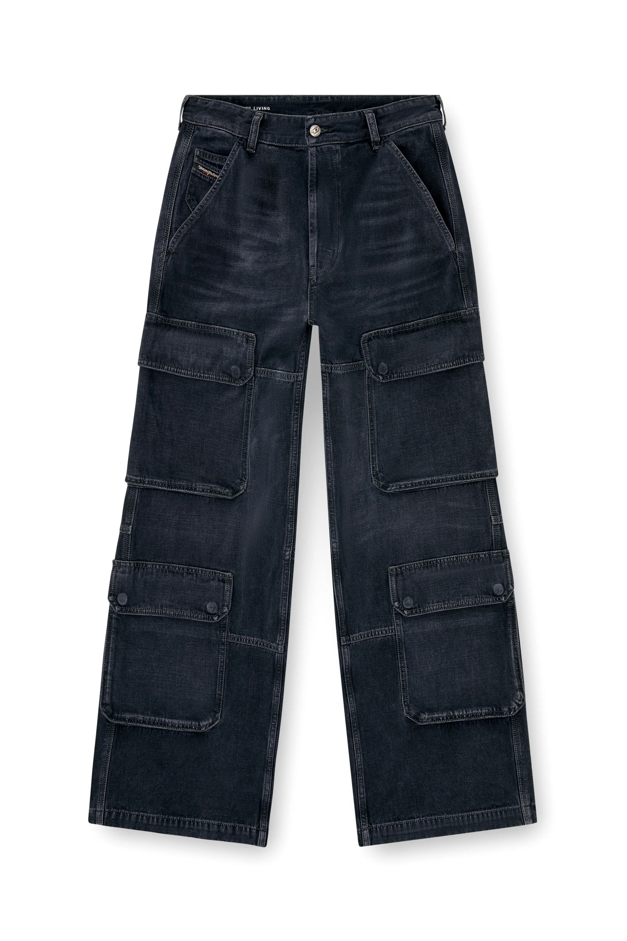 Product Description Relaxed fit with a medium waist, low crotch, and long wide leg. Designed with four cargo pockets and workwear-inspired detailing. Button fly. Channelling a utilitarian attitude that's integral to Diesel's DNA, this black wash is crafted from premium batavia-weave denim with a particularly smooth, compact feel. The fabric is stonewashed and delicately hand-sanded for a clean yet authentic look. ID: A15766007Z9 Size & Fit Model is wearing a size 32 and is 182 cm / 5'10'' Check the size chart to choose the correct size. Materials & Details Composition: 59%Cotton 41%Modal Fit: Relaxed Waist: Mid Wash: Clean Fabric: Non-Stretch Closure: Button fly