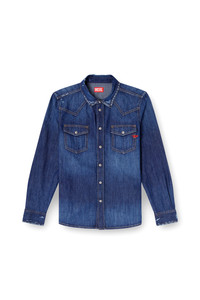 Product Description Denim shirt made from 100% organic cotton in a medium blue wash, featuring abrasions on the collar and front yokes. The design features long sleeves and a front button closure, while the two patch pockets on the chest add style and functionality. The embroidered logo on the front pocket provides a distinctive touch. ID: A126220BEBP Size & Fit Model is wearing a size L and is 182 cm / 5'10'' Check the size chart to choose the correct size. Materials & Details Composition: 100%Cotton Long sleeves Chest flap pockets Pointed back yoke Front snap-button closure