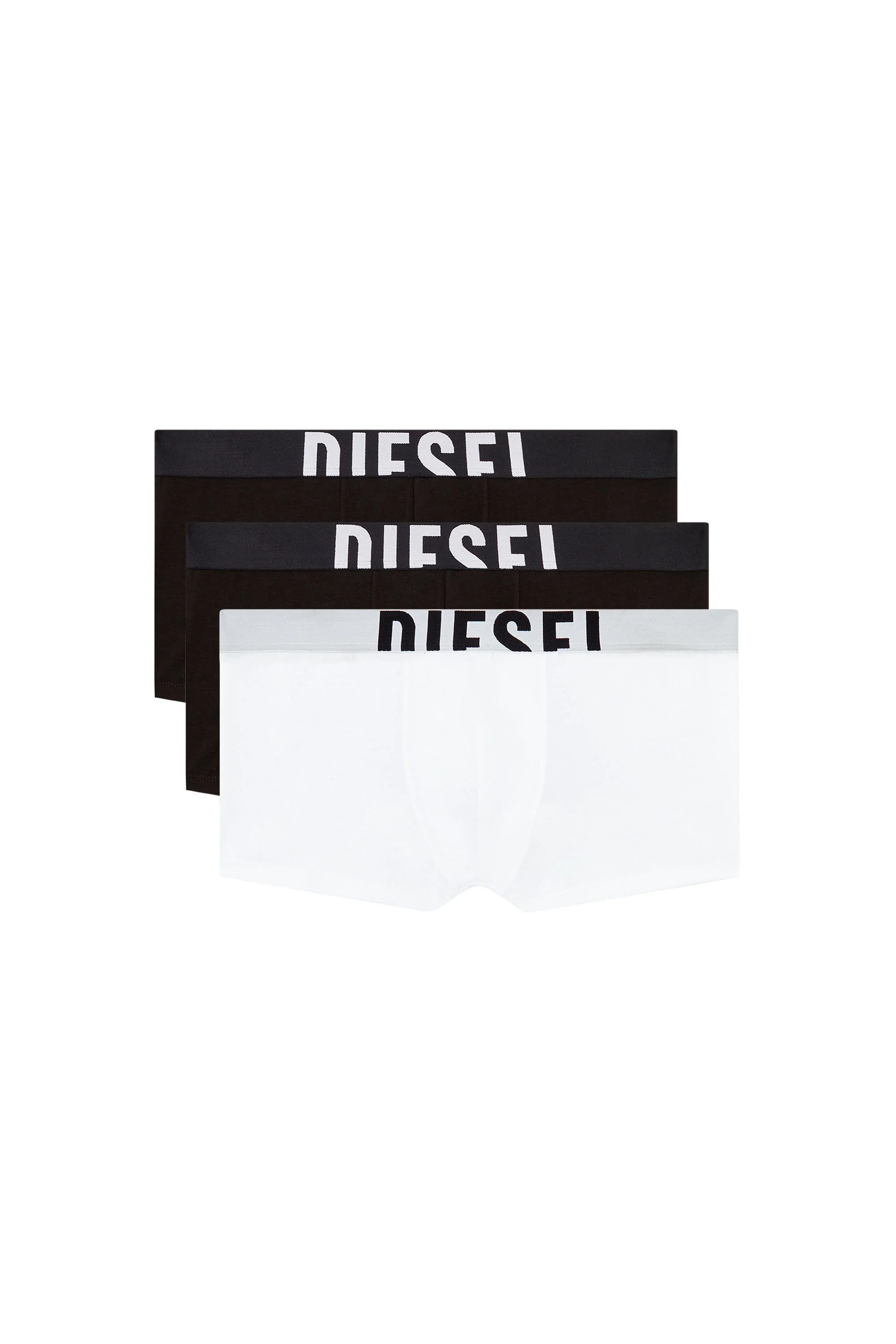 Product Description Three-pack of men's boxer briefs cut from pure stretch cotton. Each pair features a contrasting jacquard waistband, with a maxi cut-off Diesel logo across the front. ID: A175800HJBW Size & Fit Model is wearing a size L and is 182 cm / 5'10'' Check the size chart to choose the correct size. Materials & Details Composition: 95%COTTON 5%ELASTANE+ELASTIC58%NYLON 28%POLYESTER14%ELASTANE Set of 3