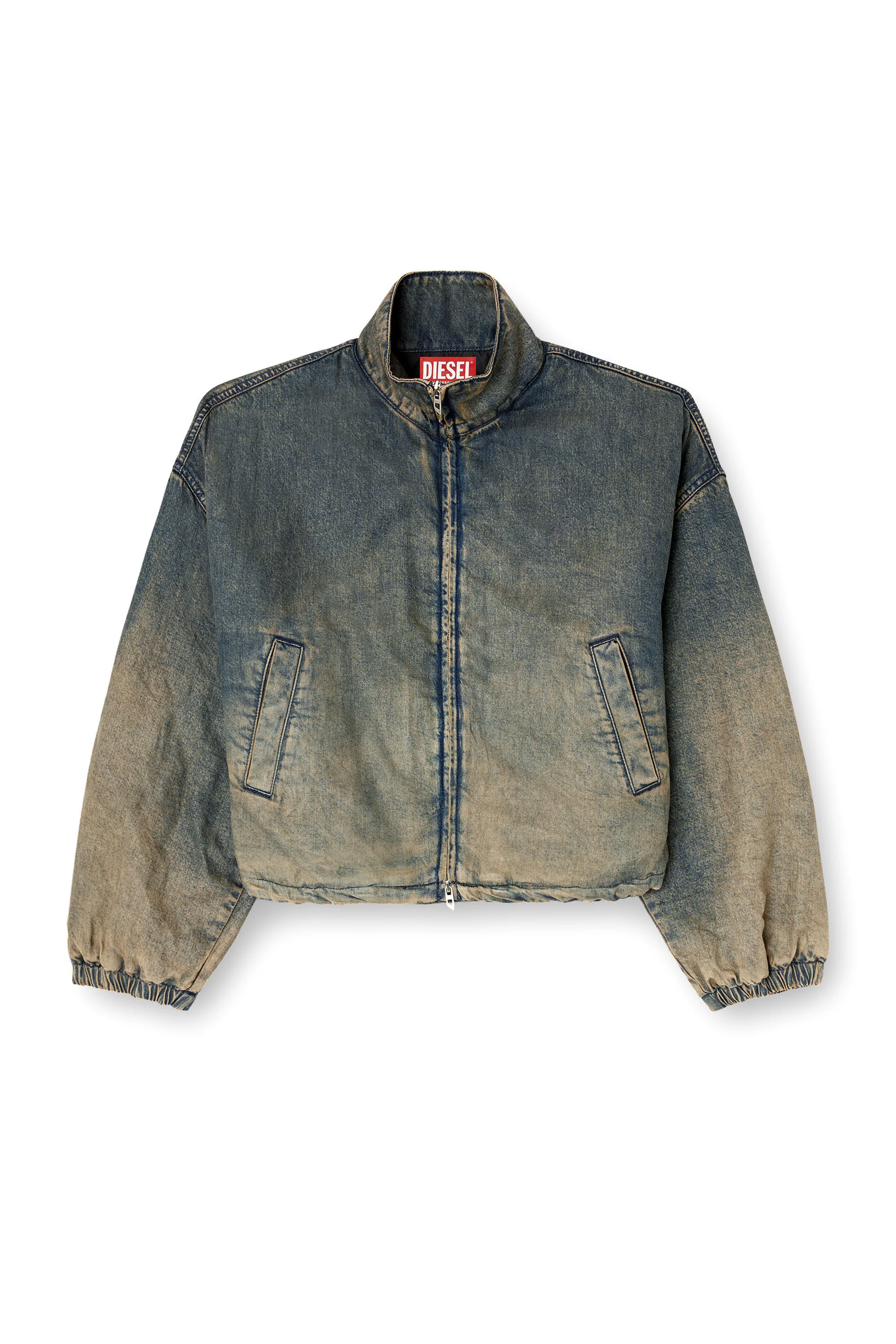 Product Description This women's jacket features a relaxed silhouette, with dropped shoulders and extra wide sleeves. The D-shaped zip pullers are a signature detail. Crafted from lightweight TENCEL™ Lyocell denim with a fluid texture, it features a blue wash is treated with spray and laser techniques to create a degrade finish on the hem, enhanced by dirt effects in sandy tones. ID: A18344068TA Size & Fit Model is wearing a size S and is 175 cm / 5'7'' Check the size chart to choose the correct size. Materials & Details Composition: 100%Lyocell Two-way zip closure Welt pockets Elasticated cuffs and hem Lined