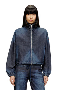 Product Description This light women's jacket is made from JoggJeans for the utmost comfort. The silhouette features slightly dropped shoulders, welt pockets, and a red D logo embroidered on the sleeve. This wash features a clean finish in a dark shade of blue that veers towards black. The fabric is made using regenerative cotton. ID: A1634409L11 Size & Fit Model is wearing a size S and is 175 cm / 5'7'' Check the size chart to choose the correct size. Materials & Details Composition: 97%Cotton 3%Elastane-Spandex High neck Elasticated cuffs Welt pockets Zip closure