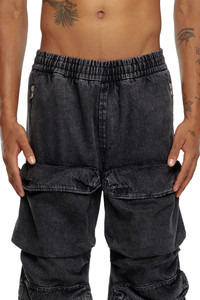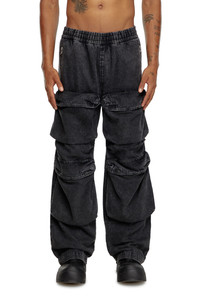 Product Description Loose style with a regular waist and straight leg. It features an elasticated waistband and maxi cargo pockets on the front of the jean for a twist on workwear pants. This fix denim is defined by a bleach-effect, marbled light blue hue and utility-inspired detailing. ID: A149940CBDH Size & Fit Model is wearing a size 32 and is 182 cm / 5'10'' Check the size chart to choose the correct size. Materials & Details Composition: 100%Cotton Fit: Loose Waist: Mid Leg: Straight Wash: Clean Fabric: Non-Stretch Color: Black/Dark grey Closure: Elastic waistband