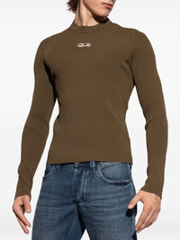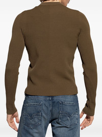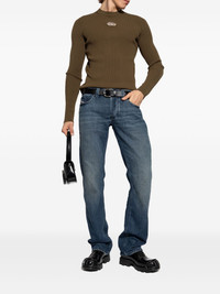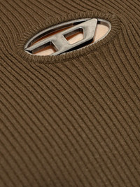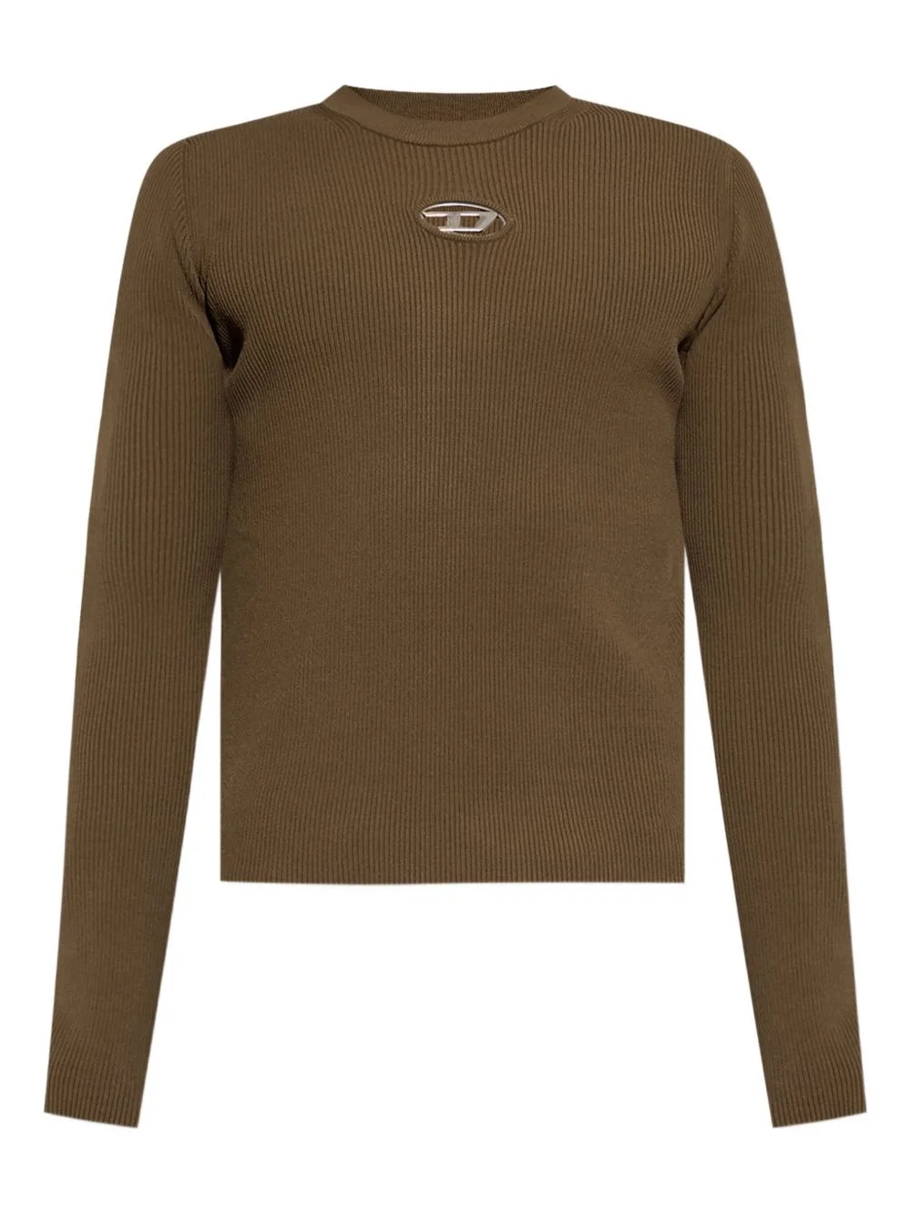 ribbed logo-detail long-sleeve T-shirt Highlights - Olive brown - Ribbed knit - Long sleeves - Round neck - Metallic logo-detail - Keyhole detail Imported Composition Outer: Viscose 83% Viscose 17% Washing instructions Read Manufacturer Guidelines