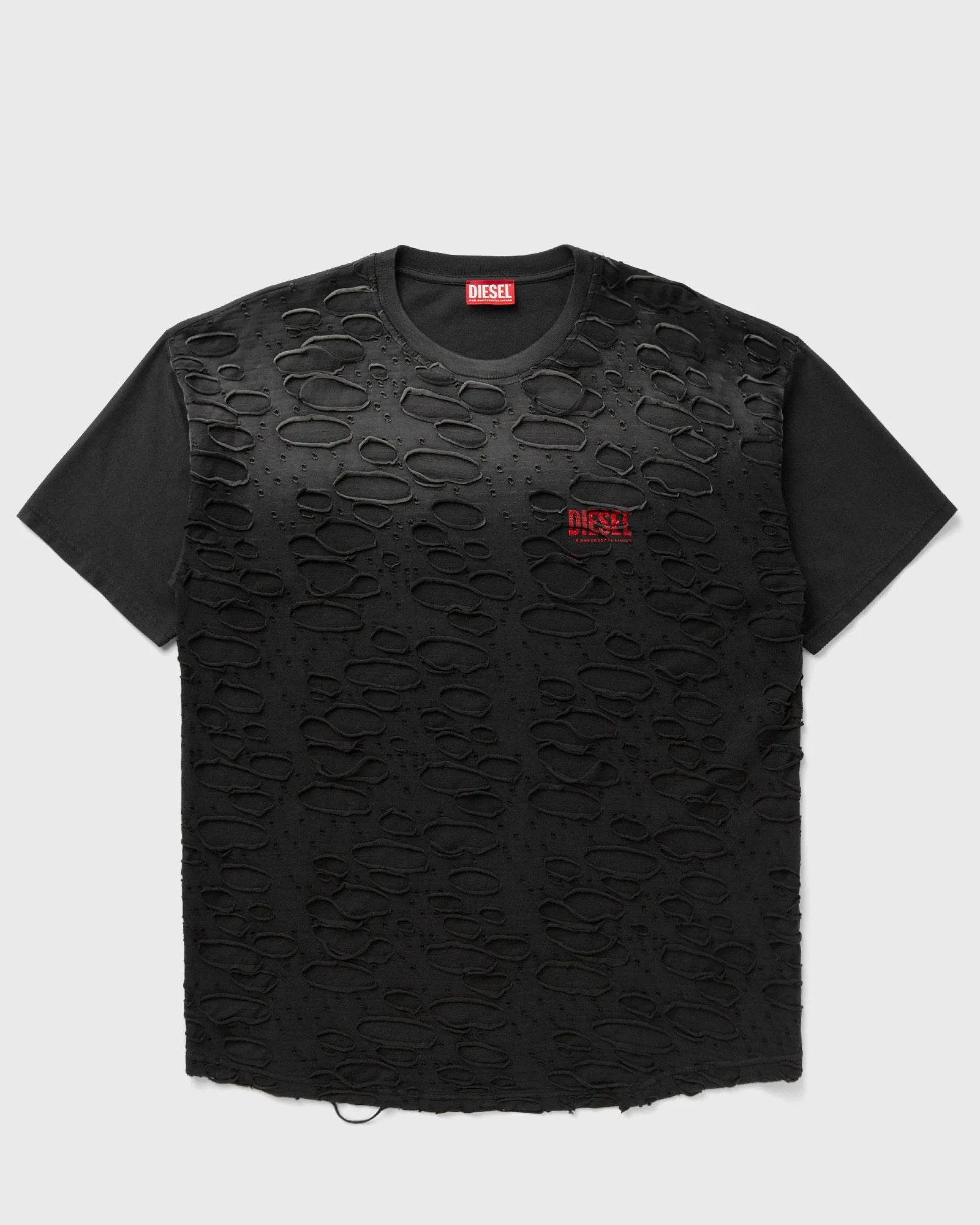 A vibrant plastisol print gives the T-Boxt-R29 round neck T-shirt from Diesel an eye-catching touch. The relaxed fit tee is made from certified organic cotton and features a jacquard layer with holes on the front. Random sprayed-on bleach effects contribute to the used look, while the back is smooth and has a slightly dropped shoulder. - Round neckline - Relaxed fit - Used look Article number: A17647-0SLBS-9XX Gender: men Color: BLACK BLACK BLACK Material: 100% Cotton
