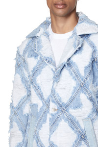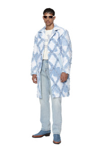 PRODUCT ID: A0602009D39 - 100%Cotton - SS22 Fashion Show Collection - Regular fit - 2 welt pockets Model is wearing a size L and is 182 cm / 5'10'' Fits true to size, take your normal size. Knee-length car coat with regular fit. The argyle pattern is hand-made from a denim patchwork and boldly shredded, creating a grid of floating yarns. This garment is part of Diesel's Spring-Summer 2022 runway collection.
