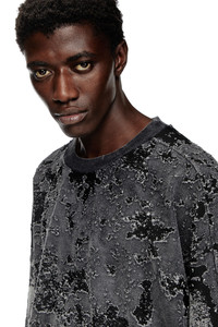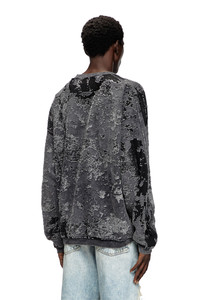 Product Description This men's sweatshirt featured on the FALL WINTER 2024 RUNWAY showcases a distressed take on camouflage. The utilitarian pattern is created using a devore technique on vanise jersey with cotton on the outside and technical fibres on the inside. To create this textured motif, the cotton is carefully burnt out in sections. A denim-inspired marble wash finish echoes the Diesel DNA. ID: A171500GIAP Size & Fit Model is wearing a size L and is 182 cm / 5'10'' Check the size chart to choose the correct size. Materials & Details Composition: Outer 61%Cotton 39%Polyester, Rib 95%Cotton 5%Elastane-Spandex, Inner 100%Polyester Fall Winter 2024 Runway Show