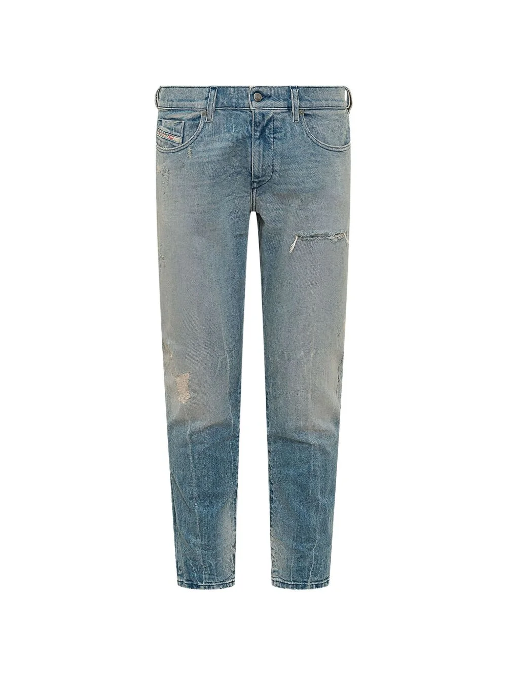 distressed jeans Highlights - Light blue - Distressed effect - Whiskering effect - Belt loops - Five pockets Imported Composition Fabric 100% Washing instructions Read Manufacturer Guidelines