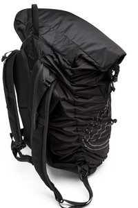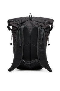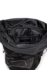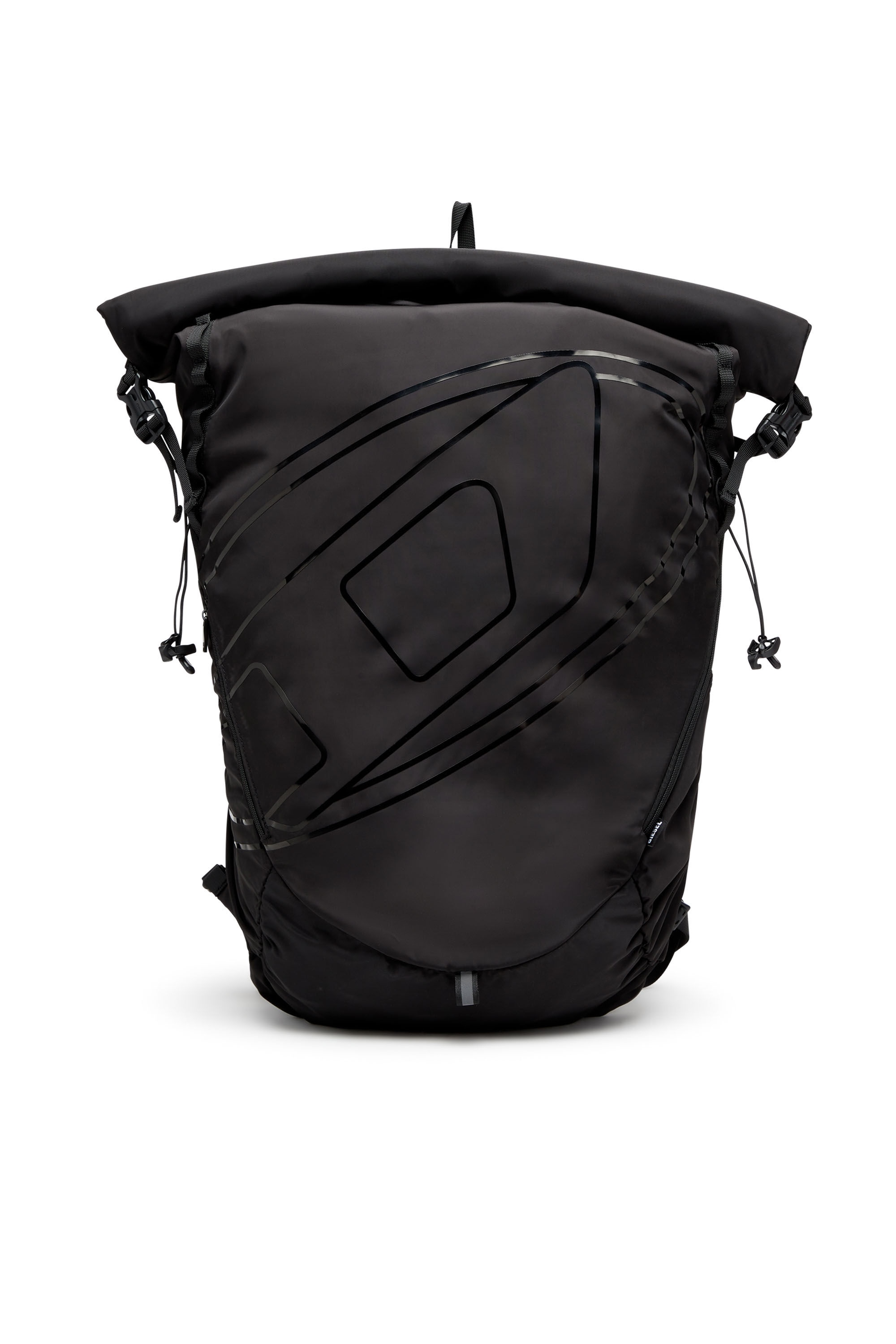 Built from lightweight nylon and mesh, this men’s hiking-inspired backpack has wide shoulder straps, a buckled roll-top closure and a front zip to access the main compartment. The glossy Oval D logo print complements the sleek, all-black look.