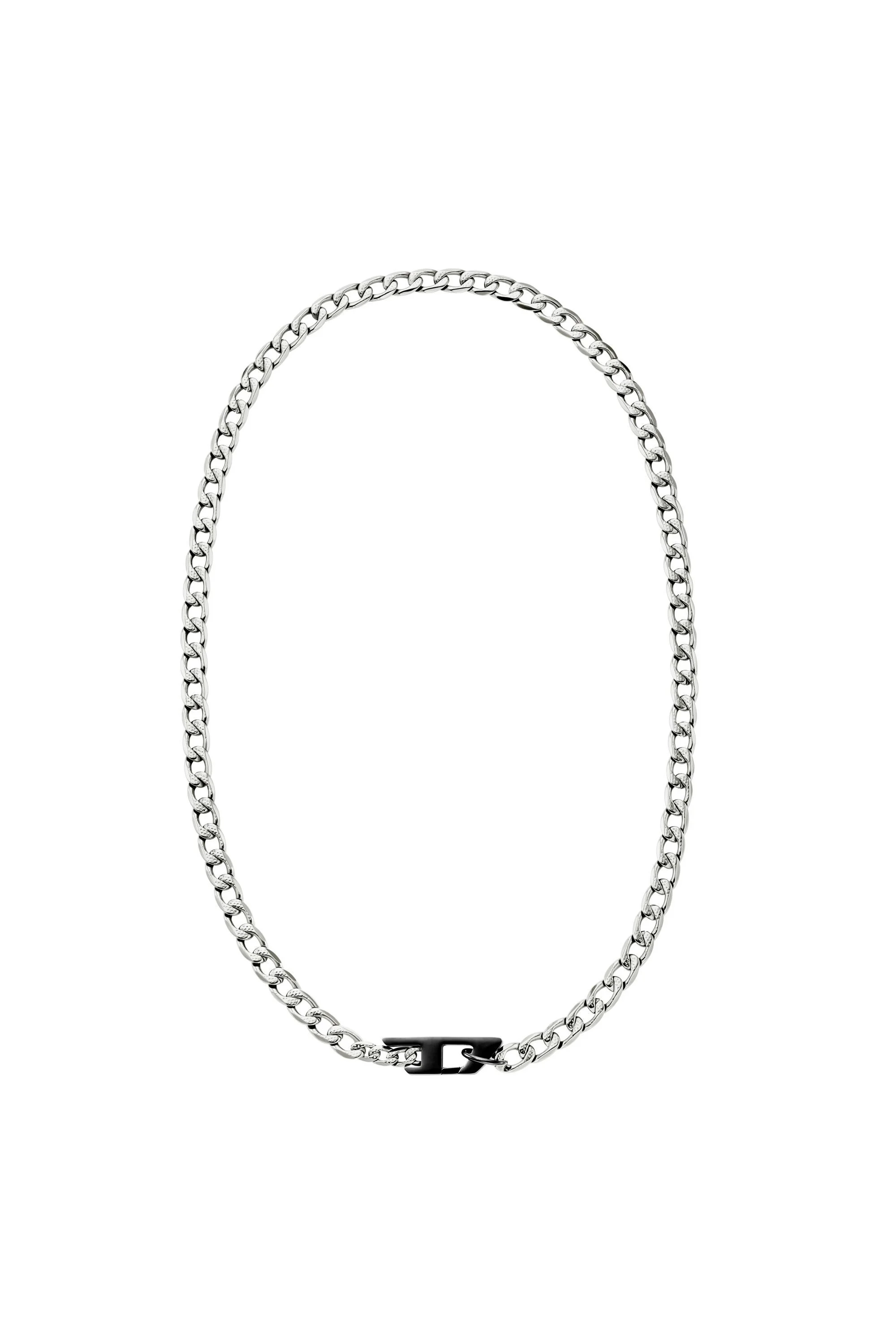 Product Description Diesel's two-tone chain necklace features stainless steel and a two tone silver and black chain with a black D logo. ID: DX163600DJW Materials & Details Composition: Steel Material: Stainless Steel Closure: Lobster Clasp Finish: Combo Measurements: L 600MM x W 7.5MM x H NA