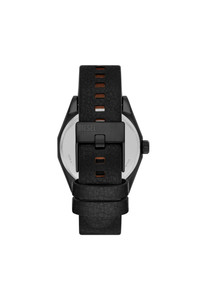 Product Description WARRANTYDiesel's 43mm Scraper watch features a black sunray dial, three-hand movement and black leather strap. ID: DZ217500QQQ Materials & Details Composition: Steel, Leather Case Size: 43 Case Thickness: 10.0MM Water Resistance: 5 ATM Case Material: Stainless steel Case Finish: Combo Attachment Material: Leather Attachment Color: Black Closure/Adjustability: Single Prong Strap Buckle Dial Color: Black Movement: Quartz/3 Hand