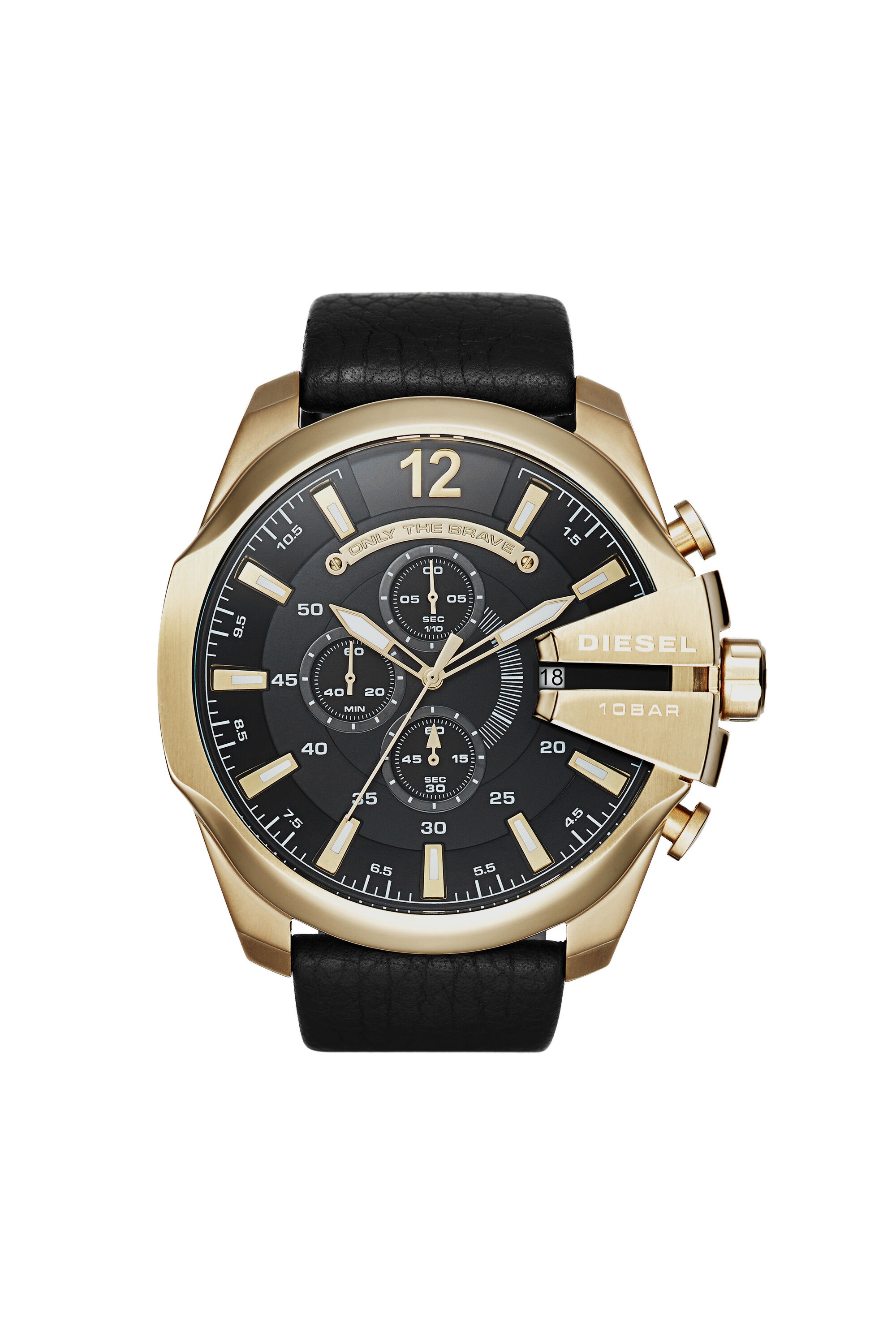 WARRANTY Watch with textured black leather and gold-tone plating. Case Size: 51 X 59 mm Case Thickness: 12 mm Lug Width: 26 mm Water Resistance: 10 ATM