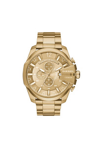 Product Description WARRANTYWith tonal gold plating and a matching gold-tone dial, this rendition of Mega Chief is as sleek and bold as it is flawlessly minimal.Case Size: 51 mmCase Thickness: 12 mmWater Resistance: 10 ATMCase Material: stainless steelCase Finish: brushed, polishedAttachment Material: stainless steelAttachment Color: goldDial Color: goldMovement: quartz/chronoCompatibility: Android OS 4.4+,Android OS 4.3+,iOS 7+ / iPhone 4s +,iOS 8+ / iPhone 5 +,iPhone 5/iOS 8.2+,iPhone 5/iOS 9.0+ ID: DZ436000QQQ Materials & Details Composition: Steel Case Size: 51 mm Case Thickness: 12 mm Water Resistance: 10 ATM Case Material: stainless steel Case Finish: brushed, polished Attachment Material: stainless steel Attachment Color: gold Dial Color: gold Movement: quartz/chrono