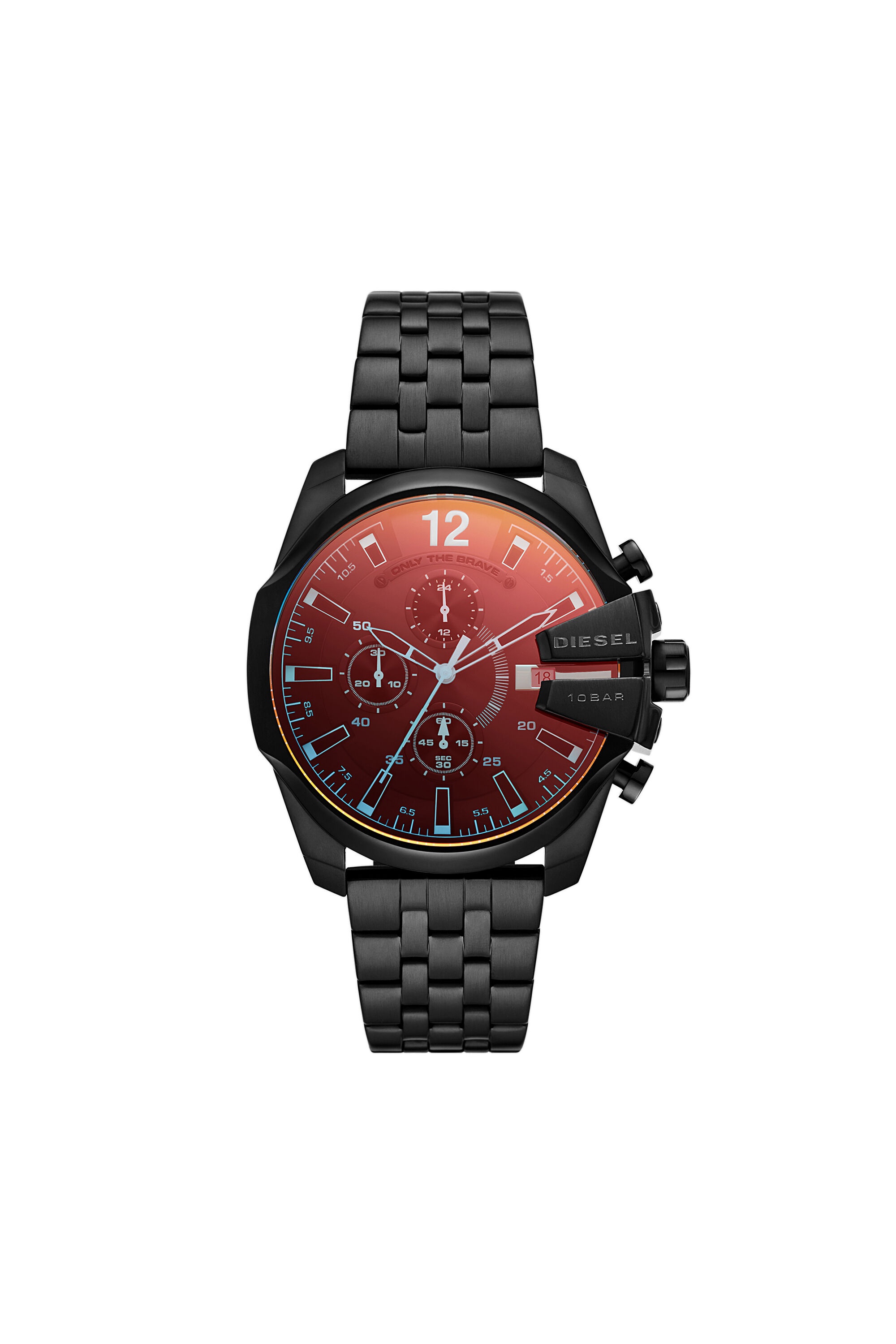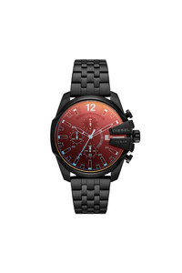 PRODUCT ID: DZ456600QQQ - Composition: Steel - Case material: Stainless Steel - Case finish: Combo - Case size (WxH): 43x50MM - Case thickness: 9.9MM - Attachment material: Stainless Steel - Attachment color: Black - Dial color: Black - Water resistance: 10 ATM - Movement: Quartz/Chrono WARRANTY This 43mm Baby Chief features a black sunray dial with stick indices, chronograph movement and black stainless steel bracelet. Case material: Stainless Steel Case finish: Combo Case size (WxH): 43x50MM Case thickness: 9.9MM Attachment material: Stainless Steel Attachment color: Black Dial color: Black Water resistance: 10 ATM Movement: Quartz/Chrono
