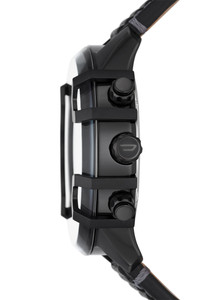 WARRANTY Diesel's 48mm Griffed watch features a black novelty, sunray dial with stick indexes, chronograph movement and black leather strap.