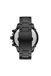 PRODUCT ID: DZ457800QQQ - Steel - Case Size: 51x59 - Case Thickness: 14MM - Water Resistance: 10 ATM - Case Material: Stainless steel - Case Finish: Combo - Attachment Material: Stainless steel - Attachment Color: Black - Closure/Adjustability: Bracelet Deployant - Dial Color: Black - Movement: Quartz/Chrono WARRANTY Diesel's 48mm Griffed watch features a black sunray dial with stick indexes, chronograph movement and black-tone stainless steel bracelet.