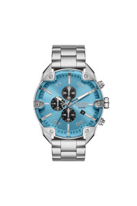 Product Description WARRANTYDiesel's 49mm Spiked watch features a blue sunray dial, chronograph movement and stainless steel bracelet. ID: DZ465500QQQ Materials & Details Composition: Steel Case Size: 49x57 Case Thickness: 13.1MM Water Resistance: 5 ATM Case Material: STAINLESS STEEL Case Finish: COMBO Attachment Material: STAINLESS STEEL Attachment Color: Silver Closure/Adjustability: Bracelet Deployant Dial Color: Blue Movement: Quartz/Chrono